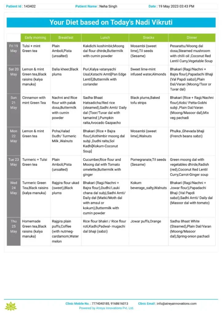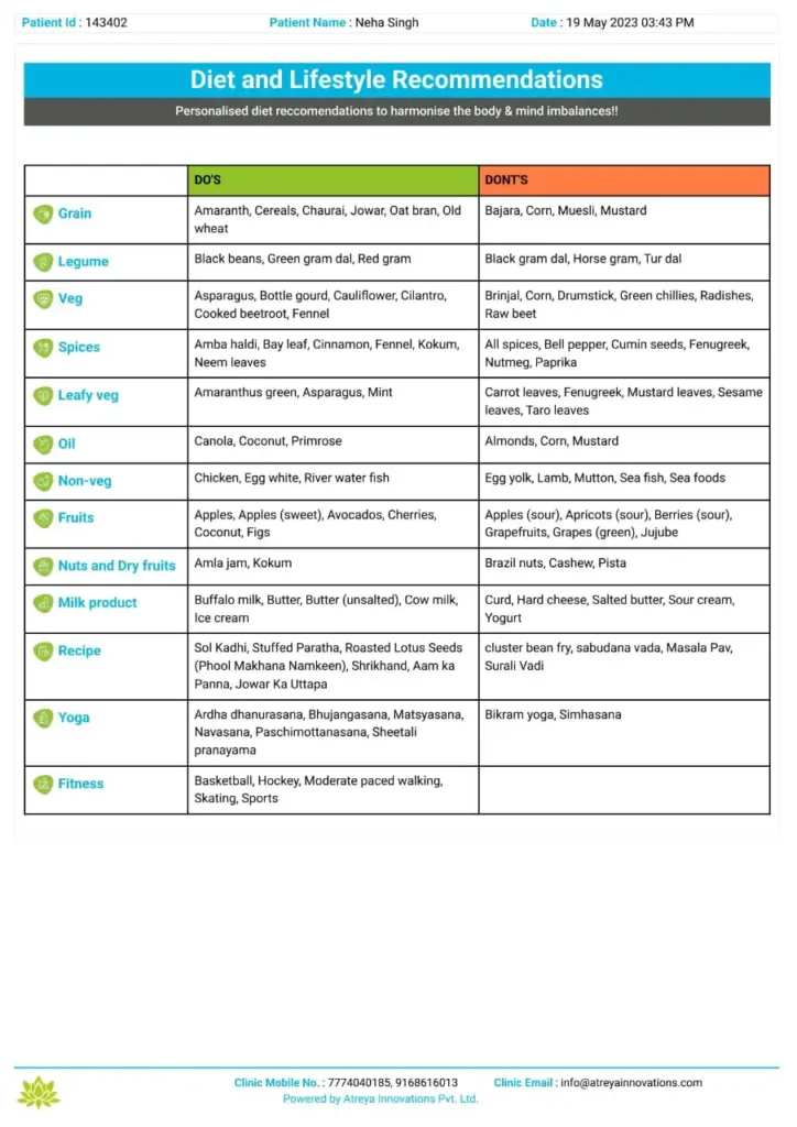 Diagnosis and Recommendations: The results are presented to the Ayurvedic practitioner in a user-friendly format which the NT reports, helping them make a more accurate diagnosis and provide tailored recommendations on lifestyle, nutrition, and exercise for the patient.
