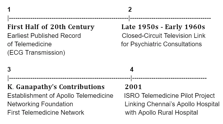 - Earliest published record of telemedicine is in the first half of the 20th century when ECG was transmitted over telephone lines.